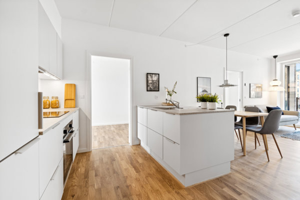Uanset om du er en børnefamilie, et ungt par, studerende eller senior, vil vores lejligheder imødekomme dine behov med moderne køkkener og badeværelser, gulvvarme og smagfulde detaljer, der skaber en sammenhængende nordisk designoplevelse.