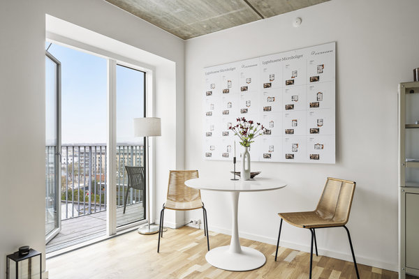 Her er boligerne en del af et moderne bykvarter, hvor fællesarealer, uderum og et centralt fælleshus skaber rammerne for både sociale møder og privatliv. Et sted, hvor du kan trække dig tilbage – og træde ud i fællesskabet, når det passer dig.