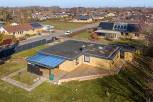 Ejendommen er opført i 1977 i flotte gule mursten, og er forsynet med et nyt tagpaptag fra 2021, ligesom alle ruder i huset er blevet skiftet.